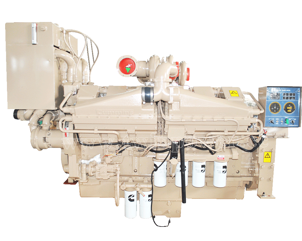 Chongqing Cummins(CCEC) kTA50 Propulsion engine, Max Power: 2200 HP | V16  | ldeal for Tugboats & Cargo Vessels… 4-stroke diesel, Aspiration Turbocharged / Aftercooled, Dispacement 50 liters, Bore & Stroke: 159x159mm, Compression Ratio 13.9:1, Fuel System Pressure Time (PT)